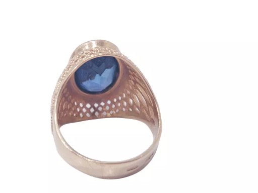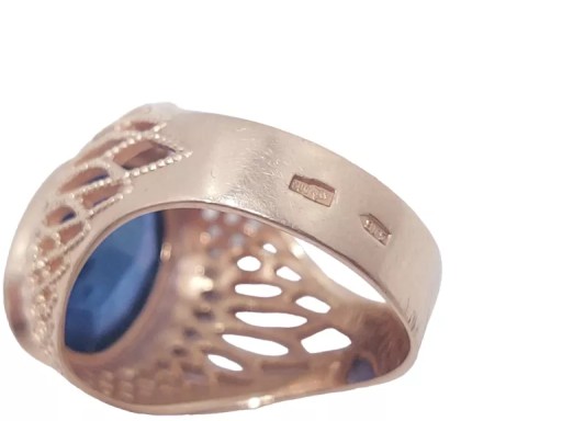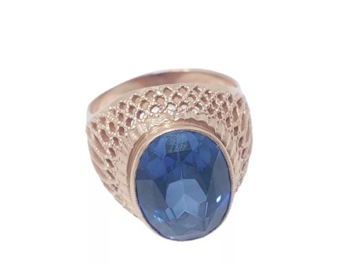 Złoty pierścionek z niebieskim kamieniem próby 583