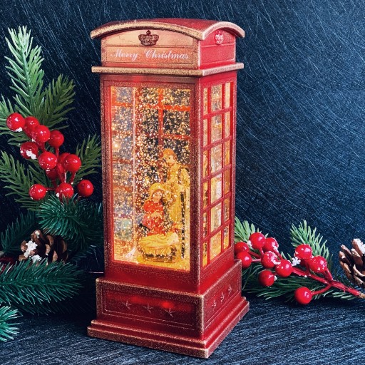 Fantastyczna ozdoba każdego domu. Budka Telefoniczna - Lampion LED klimatyczne rozproszy światło i wprowadzi Cię w przyjemny nastrój a jego blask stworzy urokliwy klimat. Lampion możesz dowolnie wkomponować w wystrój swojego domu. Jego nowoczesny wygląd będzie pasował do każdego wystroju mieszkania. W przezroczystej przestrzeni znajduje się figurka. Lampion jest podświetlany ciepłym światłem. Wewnątrz znajduje się srebrne konfetti które pięknie rozprasza światło. Dodatkowo opcja pozytywki - możliwość wyłączenia.