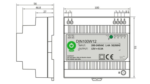 Zasilacz na szynę DIN 100W 12V 8,3A