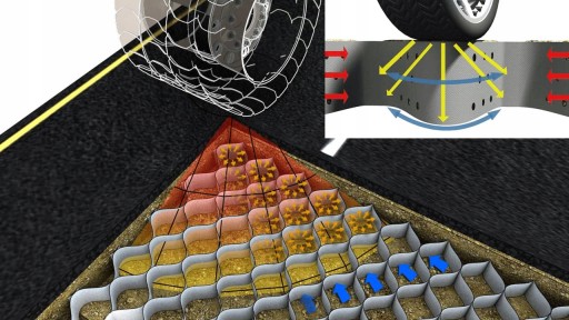 Wizualizacja rozkładu sił przy zastosowaniu geokraty komórkowej ( geosiatki komórkowej ) - działanie podobne do tego znanych z rakiet śnieżnych.