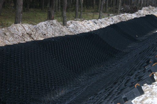 Nasza geosiatka komórkowa " Geofeniks " to doskonały sposób na zwiększenie nośności gruntu, lub wzmocnienie i zabezpieczenie zboczy przed osuwaniem..