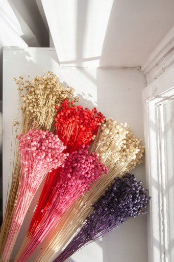 Pielęgnacja: Suszone rośliny należy eksponować w miejscu suchym, bez bezpośredniego nasłonecznienia. Można je odkurzać na dwa sposoby: