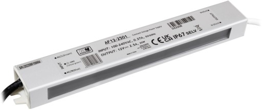 Hermetyczny zasilacz AF12-2501 może być stosowany nawet w najbardziej wymagających instalacjach LED w domu, przemyśle meblowym, czy reklamowym. Znajduje również zastosowanie przy zasilaniu innych urządzeń, które pracuję pod napięciem 12VDC.