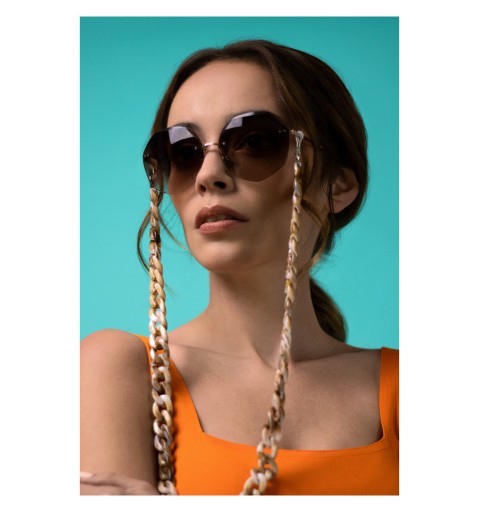 Łańcuszek do okularów z kolekcji HAYNE - model Eva. Ozdobny łańcuszek na okulary o wyrazistym splocie typu pancerka. Pasuje zarówno do okularów przeciwsłonecznych, jak i korekcyjnych.