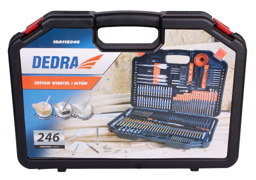 Zestaw wierteł, końcówek wkrętakowych, bitów DEDRA 18A11S246 246szt. do drewna, metalu, betonu, otwornice do drewna, nawiertak, poręczna walizka