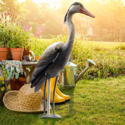 ✅REALISTYCZNY WYGLĄD - nad wyraz realistyczne wykonanie produktu zwiększa jego skuteczność. Nie można jednak zapominać o jej funkcji ozdobnej. Szara figurka czapli składa się bowiem z symulowanego upierzenia.