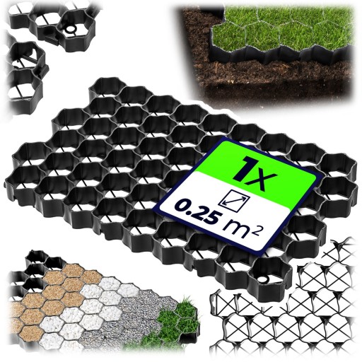 - Zastosowanie: podjazdy, drogi dojazdowe, parkingi, ścieżki, chodniki, place zabaw, skarpy, wzniesienia, ogrody itp.