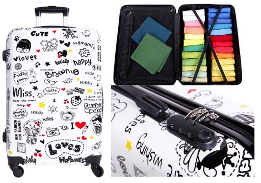Linia bagażu TRENDY to serie bagażu z materiału syntetycznego nazywanego POLCARBONEM. Jest to obecnie najpopularniejsze tworzywo,z jakiego wykonuje się walizki. Jest to bardzo twardy, a zarazem niebywale lekki polimer chroniący zawartość bagażu przed czynnikami zewnętrznymi. Ten solidny materiał jest odporny na duży nacisk,jaki często jest spotykany w lukach bagażowych samolotów. Tworzywo to także jest idealne na walizki do podróży pociągami czy autokarami z uwagi na swoją lekkość i trudność zarysowania. Bagaż wykonany z tego tworzywa idealnie sprawdza się zarówno w długich podróżach,jak i na krótkich trasach. Szeroka gama wzorów zaspokoi gusta nawet najbardziej wybrednego podróżnika.