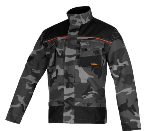 Kurtka ochronna CLASSIC CAMOU o wyjątkowo atrakcyjnym wzornictwie i doskonałej funkcjonalności. Wykonane z bardzo wytrzymałej tkaniny canvas o składzie 65% poliestru i 35% bawełny o gramaturze 260 +/-10 g/m 2 oraz tkaniny polyester Oxford 600D o mocnym i zwartym splocie.