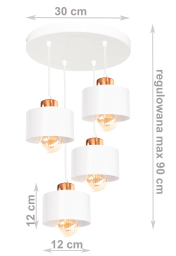 - Cztery żarówki na standardowy gwint E27 o maksymalnej mocy 60W każda