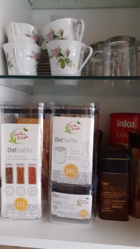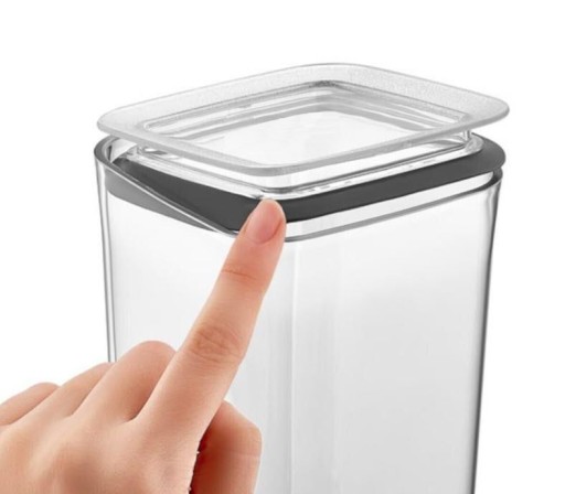 Pokrywa ma wypust, umożliwiający stabilne ustawienie na niej kolejnego pojemnika. Dodatkowo pokrywa ma uszczelkę silikonową, bardzo dobrze spasowaną. Dzięki niej pojemnik jest szczelny i nadaje się do przechowywania różnych produktów bez utraty ich aromatu.