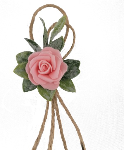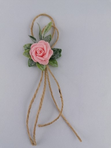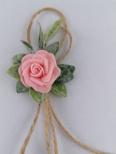 Kotylion mocowany jest na metalowej zapince posiadającej klips i agrafkę.