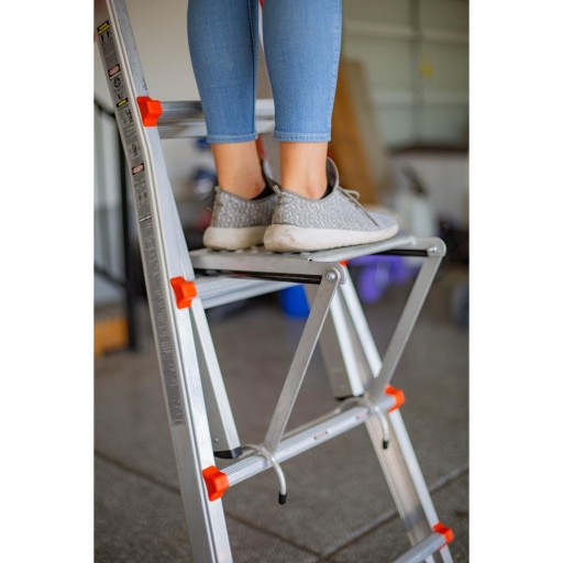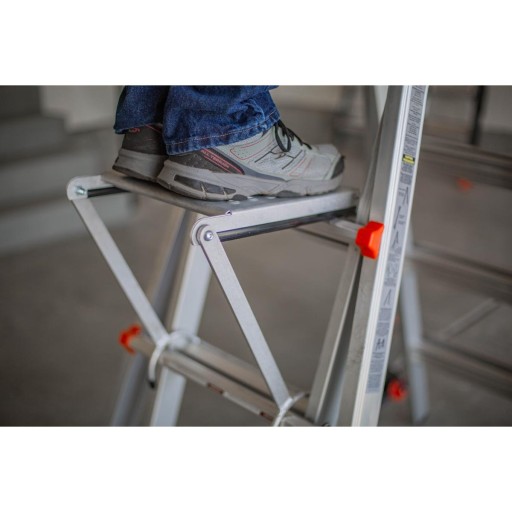 - Półka stopień firmy Little Giant pasuje do wszystkich drabin przegubowych tej firmy.