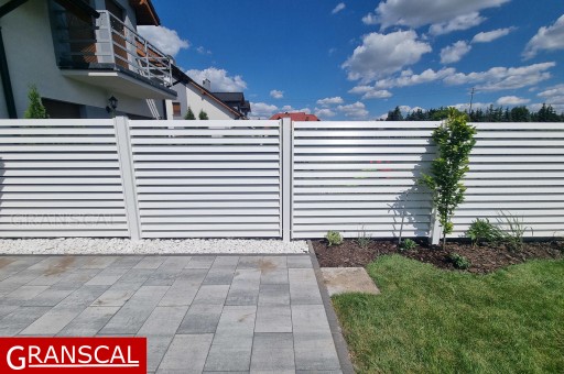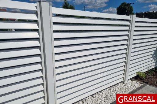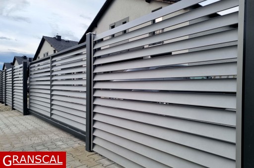 Żaluzjowy charakter ogrodzenia - dający większą widoczność od strony ogrodu jednocześnie dając poczucie prywatności od strony ulicy.