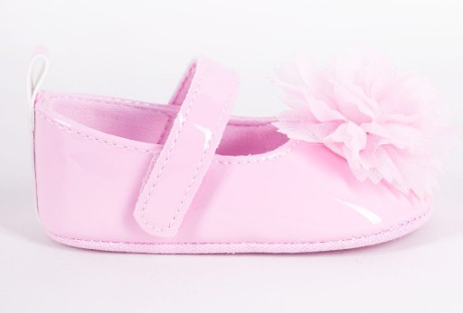 Śliczne dziewczęce buciki w kolorze różowym. Wspaniale sprawdzą się do eleganckich stylizacji dla jeszcze niechodzących maluszków. Dzięki zapinaniu na rzep, można je szybko założyć i dopasować do stopy dziecka.