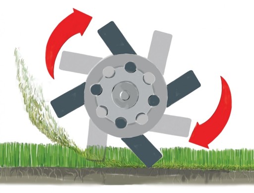 Podczas wertykulacji trawnika ostrza wychylne obracają się, aby usunąć mech i strzechę, umożliwiając dostęp światła, wody i niezbędnych składników odżywczych do korzeni trawy