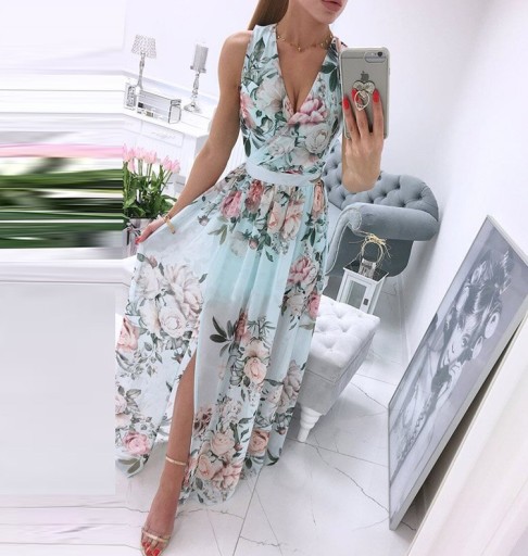 SUKIENKA KOKTAILOWA DŁUGA MAXI W KWIATY