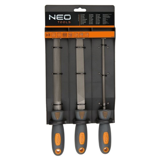 Zestaw pilników do metalu NEO (nr ref. 37-605) zawiera 3 pilniki o długościach 200 mm każdy i przekrojach płaskim, półokrągłym i okrągłym. Przeznaczone do szlifowania metalu. Wykonane z wysokiej jakości stali stopowej T12, charakteryzującej się wysoką twardością. Ergonomiczne uchwyty pokryte tworzywem TPR zapewniają wygodę i bezpieczeństwo podczas pracy. Marka NEO spełnia oczekiwania profesjonalistów.