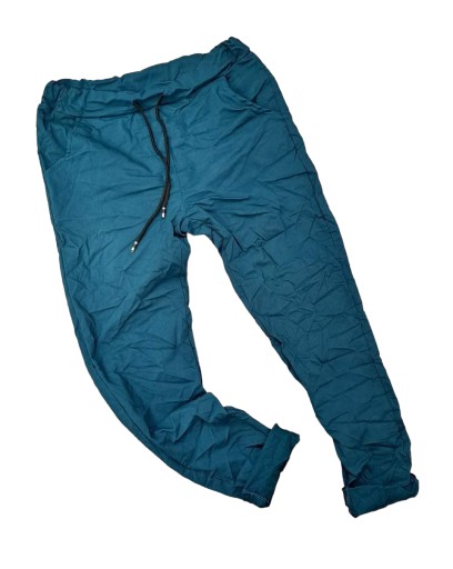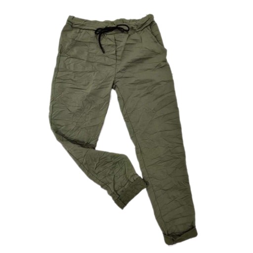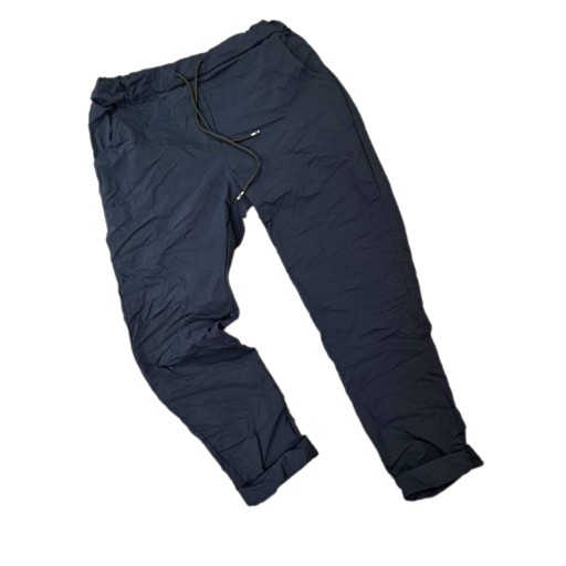 Długość regulujemy sobie podwiniętą nogawką. W pasie gumka i dodatkowo sznurek.