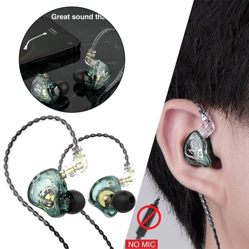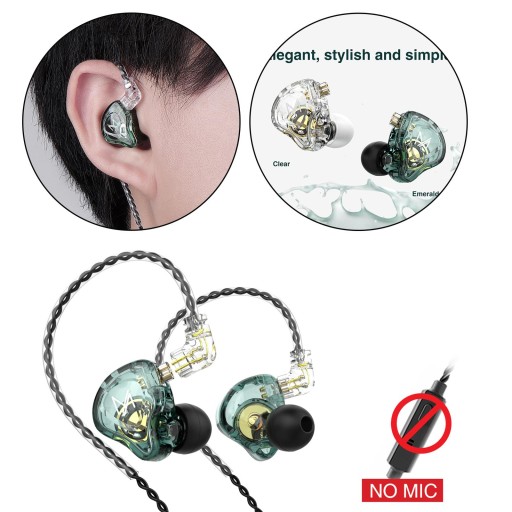 1BA + 1DD Hybrydowy Sterownik Armatury HIFI Bass High Fidelity Earset Zielony Bez Mikrofonu