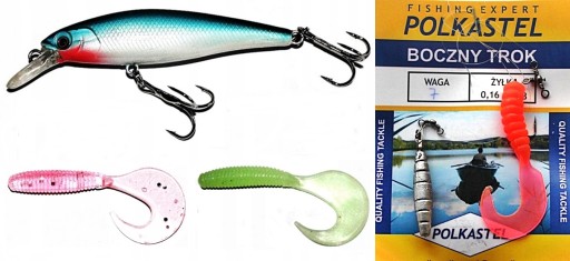 GOTOWY ZESTAW DO BOCZNEGO TROKU - ŻYŁKA + HACZYK Z RÓŻNOKOLOROWĄ GUMĄ + KRĘTLIK Z AGRAFKĄ + DOCIĄŻENIE.