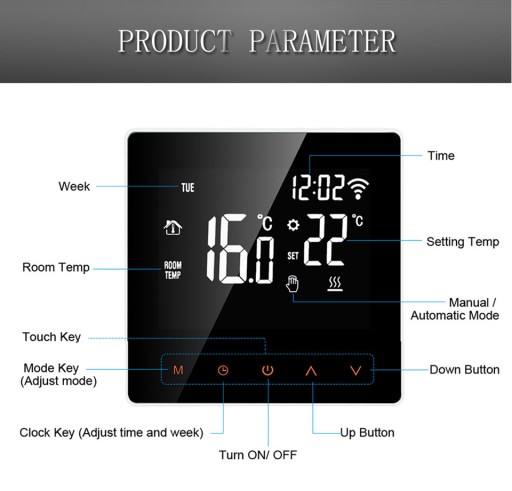 【Tygodniowy programowalny】 Termostat obsługuje różne ustawienia temperatury odpowiednio z 6 trybami czasu dziennie.