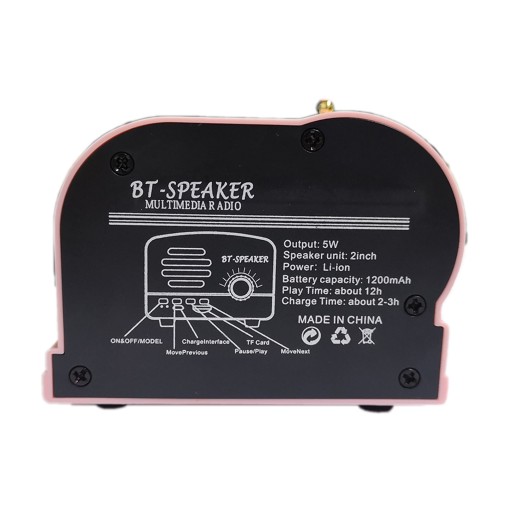 Retro głośnik bezprzewodowy Przenośny zewnętrzny głośnik stereo 1 szt. Różowy