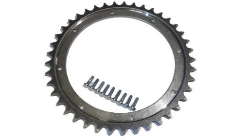 Wieniec pod oryginalny łańcuch i oryginalną osłonę, nie od WSK. Grubość zębatki 5 mm, w komplecie z nitami.