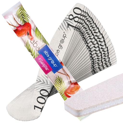 Jednorazowe pilniki do paznokci Aba Group o gradacji 100/180, dedykowane do użytku profesjonalnego. Pilniki przeznaczone są do pracy z masą żelową i akrylową, zalecane do zabiegów wymagających efektywnego, a jednocześnie bezpiecznego opiłowywania, skracania, czy też do wstępnej obróbki paznokci.