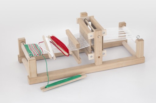 - - Twórcza zabawa z krosnem tkackim gwarantuje ciekawe zajęcie, w którym każdy maluch może stworzyć swój mały warsztat tkacki.
