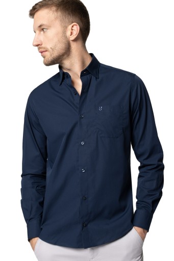 Koszula sprawdzi się zarówno do codziennych stylizacji, jak i na wieczorne wyjścia. Granatowy kolor jest na tyle uniwersalny, że z powodzeniem dopasujesz go do innych ubrań. Granatowa koszula bawełniana doskonale wygląda w połączeniu z klasycznymi jeansami i sportową marynarką.
