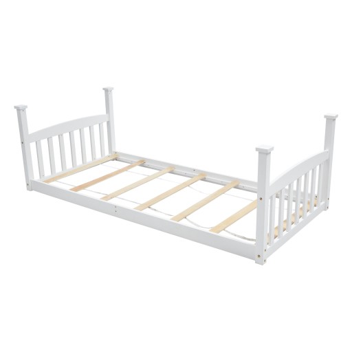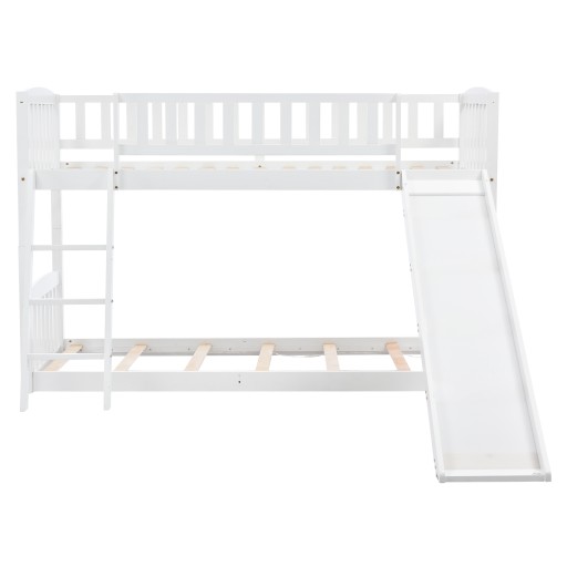 Łóżko piętrowe ze zjeżdżalnią, niskie łóżko dziecięce Rama łóżka piętrowego Łóżko z litej sosny z podstawą z listew 90 x 200 cm, białe