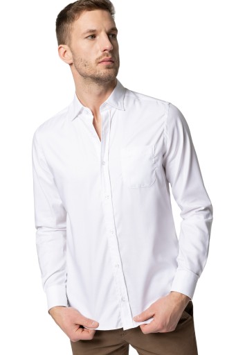Bawełniana biała koszula pasuje do stylizacji z garniturem lub w stylu smart casual. W połączeniu z marynarką, spodniami typu chino i sneakersami, uzyskasz idealny codzienny zestaw, np. do pracy.