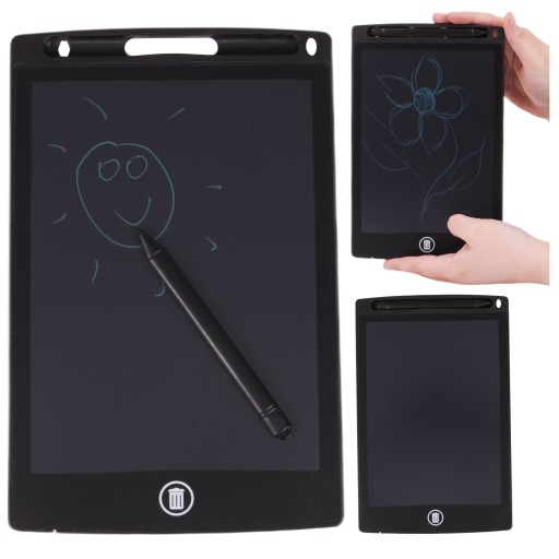 - Elektroniczny tablet do rysowania został wyposażony w 8,5” ekran LCD, po którym można swobodnie pisać lub rysować dołączonym rysikiem.