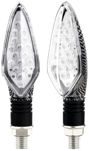 Uniwersalne kierunkowskazy motocyklowe LED Shield Tail wyróżnia oszczędność energii oraz ciekawe wzornictwo.