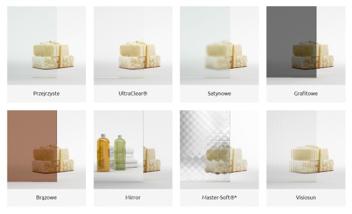 Istnieje możliwość zakupienia drzwi w szkle innym niż przejrzyste - poniżej dostępne warianty: