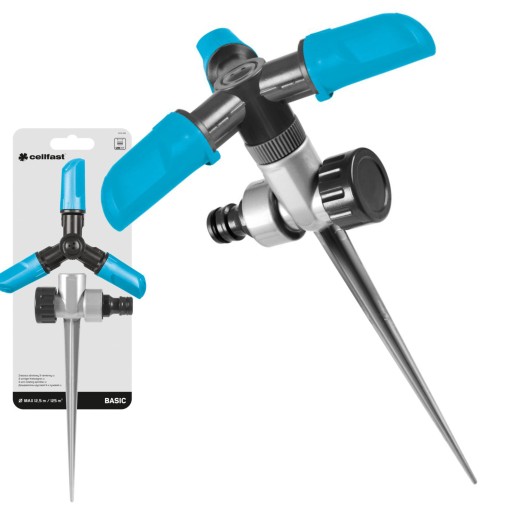 3-РУЧНОЙ ВРАЩАЮЩИЙСЯ ДОЖДЕВАТЕЛЬ CELLFAST С ПРИВОДОМ В САДОВОМ ШТИФТЕ BASIC 150 м2