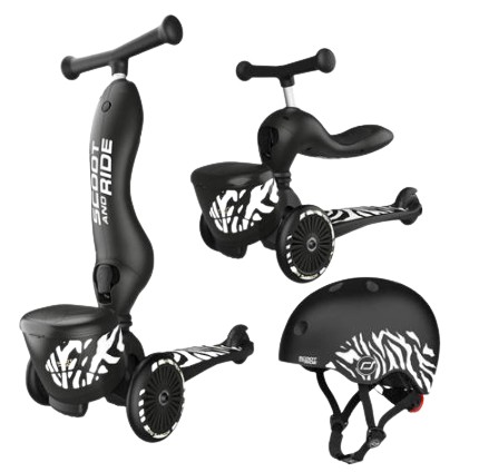 SCOOTANDRIDE Highwaykick 1 Lifestyle 2w1 Jeździk i hulajnoga z zamykanym schowkiem + kask Zebra