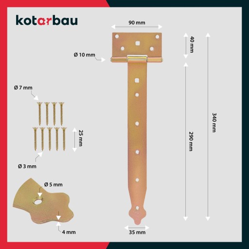 Zawias drzwiowy KOTARBAU wykonany jest z wysokogatunkowej stali, co zapewnia produktowi długą żywotność. Najwyższa jakość produktu chroni go przed uszkodzeniami mechanicznymi. Stabilna konstrukcja wzmacnia drzwi i bramy. Wysokiej jakości materiały są odporne na promienie UV i opady atmosferyczne.