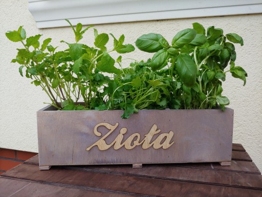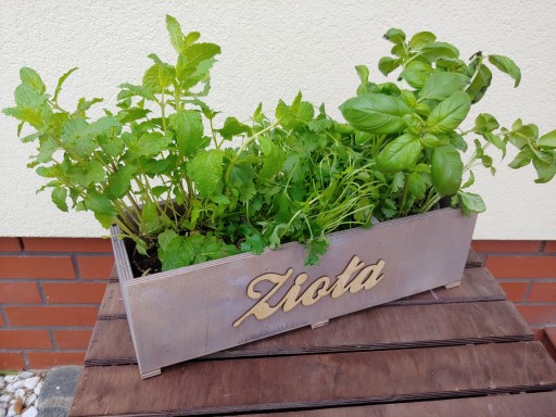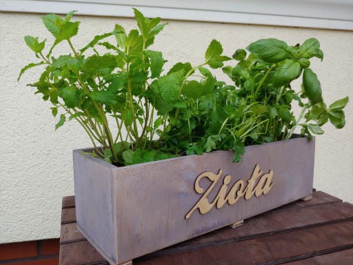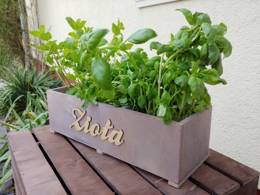 Wykonana na zestaw ziół doniczkowych typu gerber, bazylia, prymulka itp.