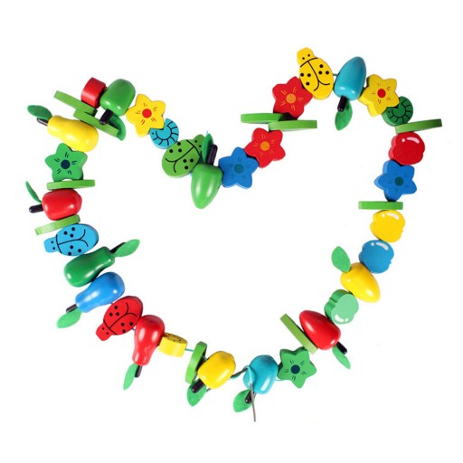 Podczas nawlekania dzieci mogą nauczyć się utrzymywać równowagę przedmiotów.