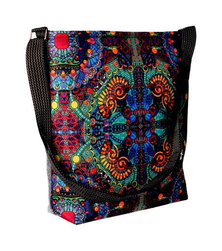 O jej wnętrzu na koniec słów kilka. Podwójna, wewnętrzna, mniejsza kieszonka pomieści klucze, telefon i inne drobiazgi. Idealne rozwiązanie na przechowywanie mniejszych przedmiotów, których nie chcesz szukać po całej torbie. O zawartość torebki zadba zamek błyskawiczny, na który torba jest zamykana. Kolorowy, wzorzysty nadruk na torbie? Na koniec mała ciekawostka. Wydajne i trwałe rozwiązanie jakim jest technologia full color sprawia, że nadruk nie ściera się, w związku z tym kolory na długo pozostają żywe i naturalne. Nie martw się również, gdy torba się zabrudzi. Możesz czyścić ją w 40º używając delikatnego detergentu. Pamiętaj by jej nie wirować, to może ją uszkodzić.