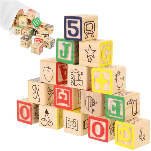 KLOCKI DREWNIANE / LITERY / CYFRY / OBRAZKI / UKŁADANKA