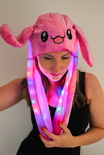 ПЛЮШЕВАЯ ШАПКА С УШАМИ ДВИЖУЩИЙСЯ СВЕТОДИОД ПИКАЧУ Розовый Кролик ПАСХА Горит