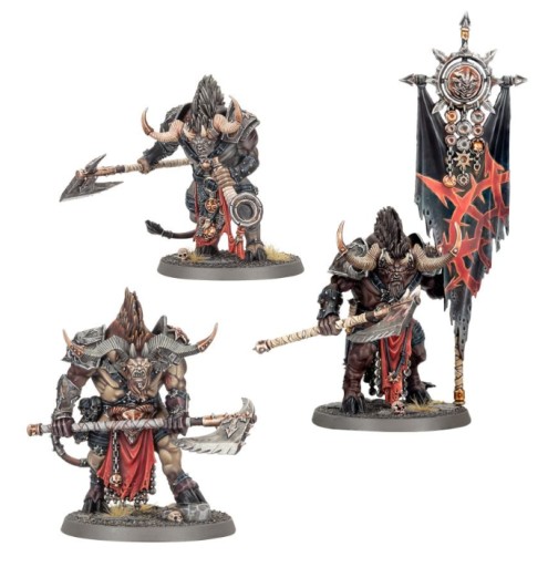 W zestawie znajdziesz mnóstwo opcji kosmetycznych, które pozwolą Ci na wymieszanie Twoich Ogroidów Theridonów - tarcze, pauldrony i głowice toporów są całkowicie wymienne, podobnie jak pięć różnych twarzy i pięć zestawów rogów. W zestawie znajduje się także pięć sygnetów Chaosu - dla Khorne'a, Tzeentcha, Nurgle'a, Slaanesha i Chaosu Niepodzielnego - do ozdobienia zbroi Thorakona, a także kolejnych pięć do wyboru, by przykryć sztandar Niosącego Sztandar.