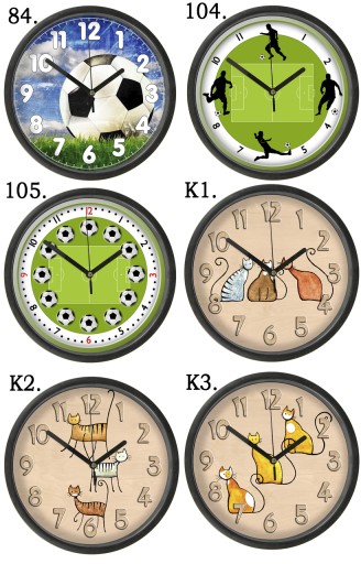 Dostępne wzory:UWAGA: Wzór nr 7 jest zegarem z tarczą w postaci Palnu Daltońskiego. Zegar posiada jedną dużą wskazówkę odmierzającą czas. Pozwala zrozumieć dzieciom długość upływającego czasu. Ma za zadanie zilustrować specjalną tarczą przedział czasowy 5-, 10-, 15-, 30- minutowy. Podczas pracy określamy kolorem czas na wykonanie zadania , ustawiając ręcznie wskazówkę na początku odpowiedniego koloru.