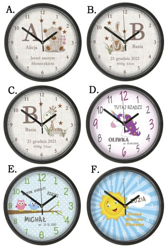 Zegar edukacyjny dostępny jest także w innych wersjach graficznych. Domyślnie oferta dotyczy wzoru nr 4 (wzór z głównego zdjęcia).