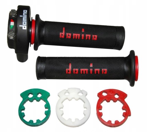 - W zestawie 2 gumowe manetki czarne z czerwonym logo