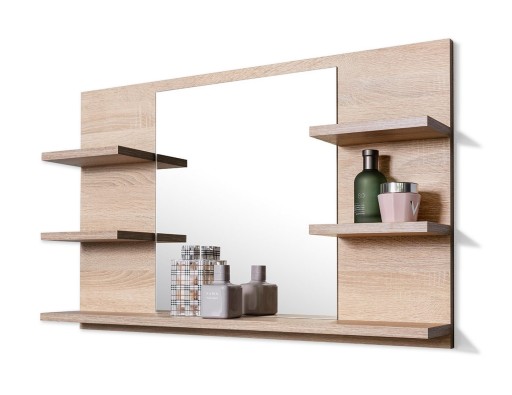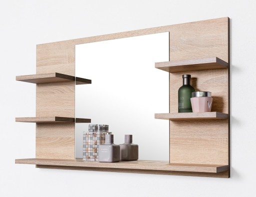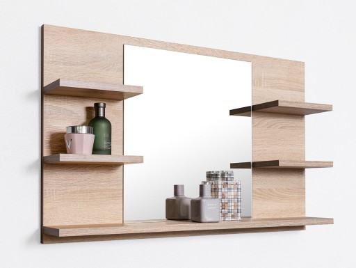 SONOMA ДУБ настенное зеркало с 5 полками для ванной комнаты, 80 см