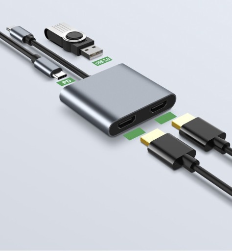 HUB USB-C ADAPTER 4w1 4Apple_pl z portami: 2x HDMI 4K, USB 3.0, Power Delivery 87W